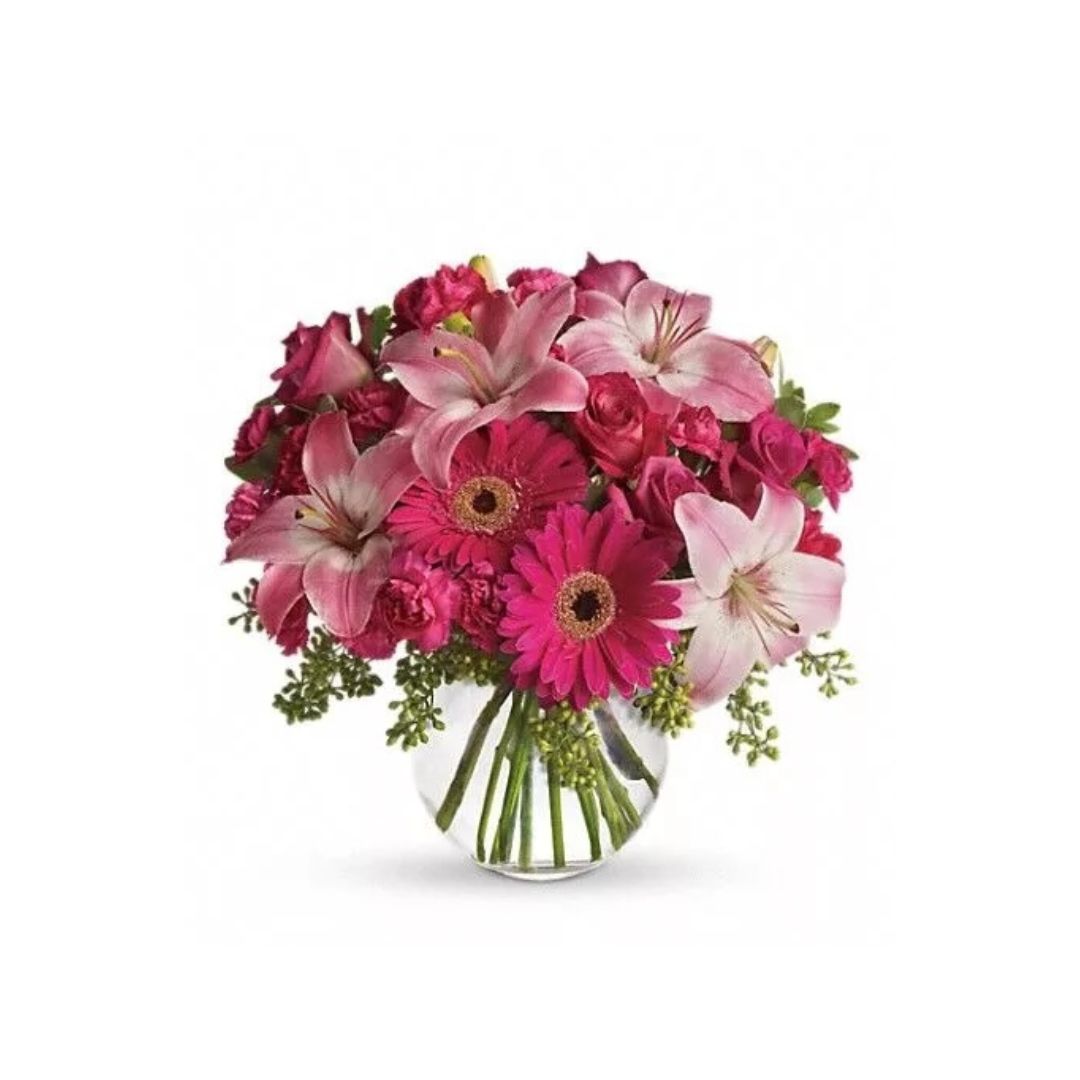 Youthful. Graceful. Beautiful. These are just a few qualities that come to mind when gazing at a gorgeous bouquet of pink flowers. Whether you want this arrangement to say “Happy Anniversary” or “Happy Any Day,” you can be sure the day it arrives will be brighter for anyone lucky enough to receive it.