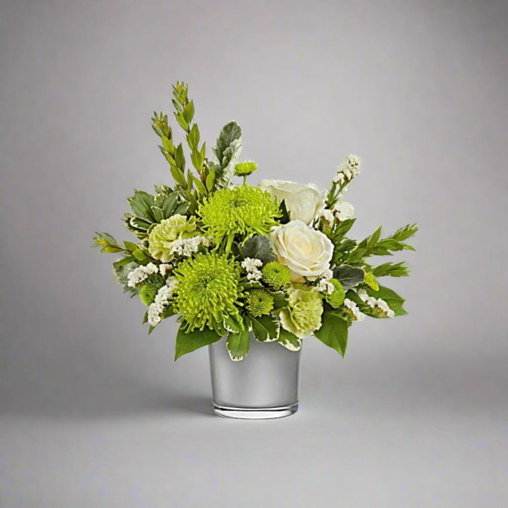 Celebrate the beauty of any special occasion with this fresh green arrangement, presented in a glass vase.