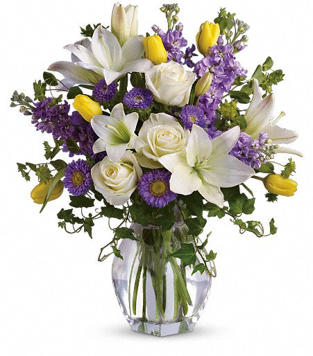 Graceful, elegant and timeless, this beautiful spring bouquet offers up colors, blossoms and textures in perfect harmony.